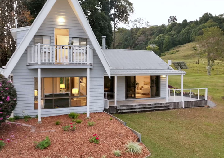 Maleny Chalet is a recently renovated home on almost two private acres with stunning views over farmland to the beautiful Glass House Mountains.